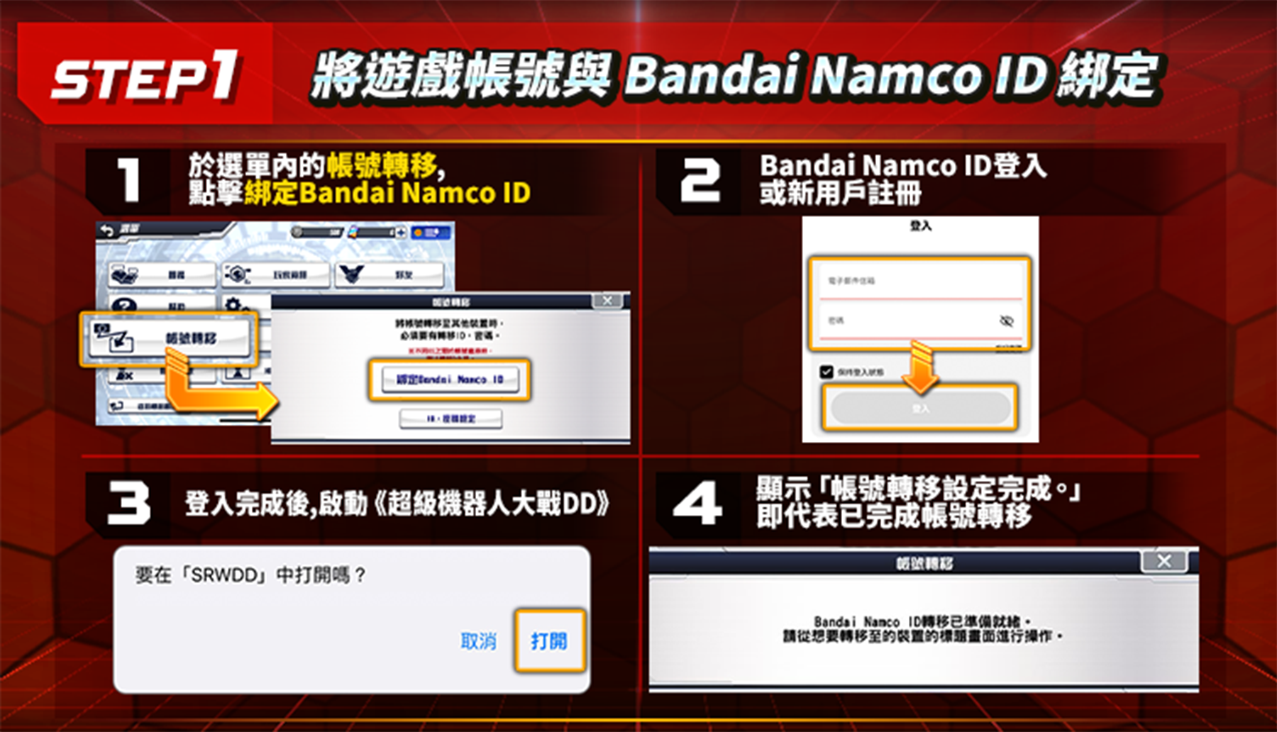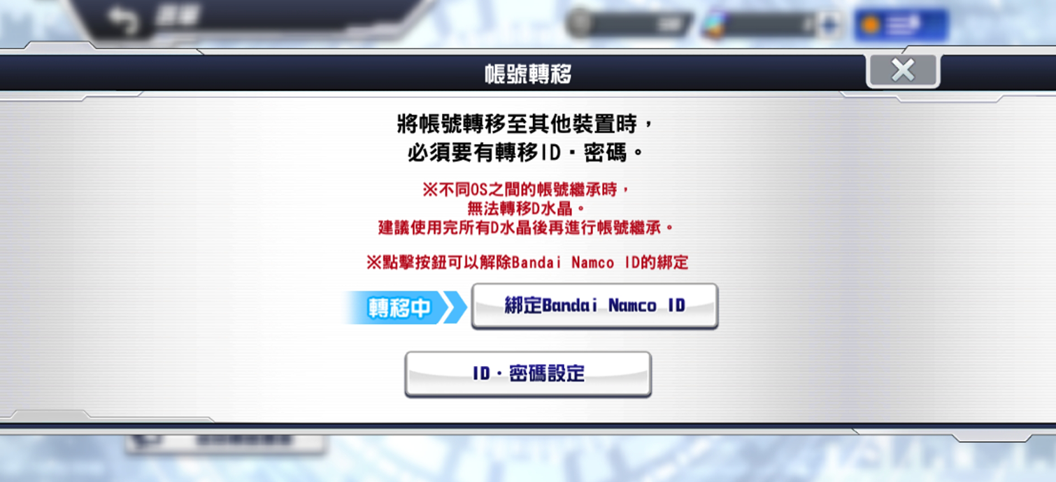 請從資料綁定確認是否選為綁定Bandai Namco ID。